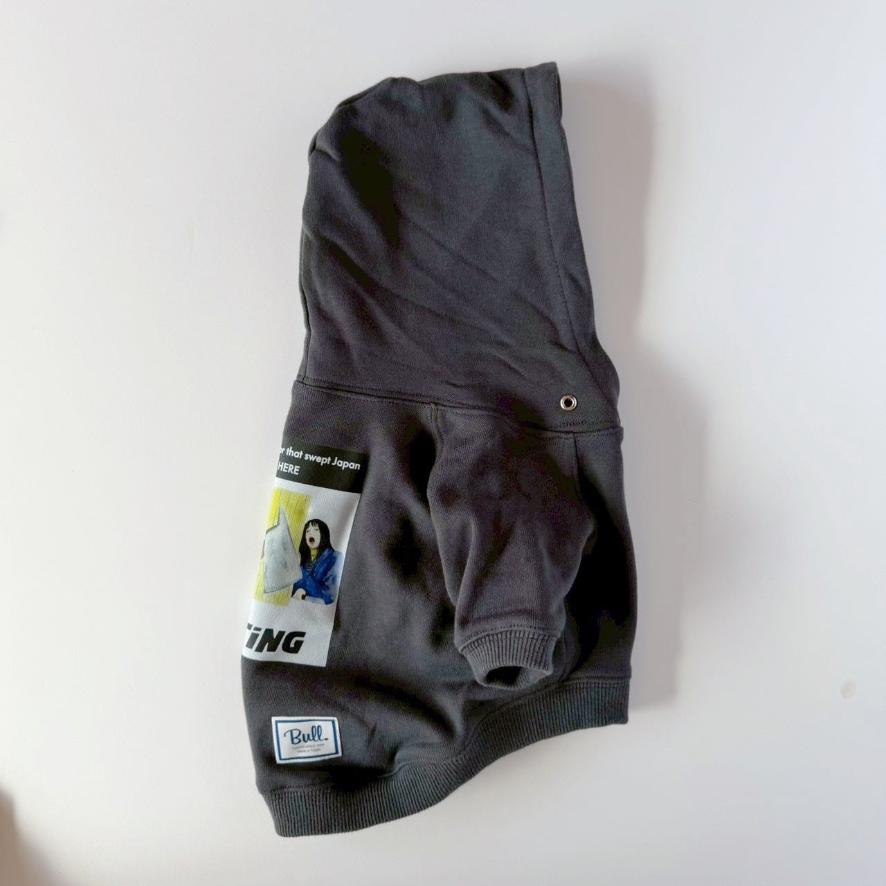 モデルBUHI募集企画でご協力いただいた、もろみちゃんがおやつ欲しさにひと暴れした様子をプリントしたパーカーです。