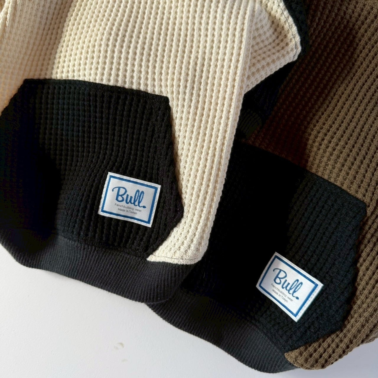 Bull.Tokyo大人気アイテムのワッフルパーカーを、今回は2色組み合わせてNewデザインにしてみました。